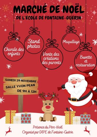 Rendez-vous le samedi 29 novembre, de 9h à 12h à la salle Yvon Péan pour le marché de Noël organisé par l'APE de Fontaine-Guérin.
