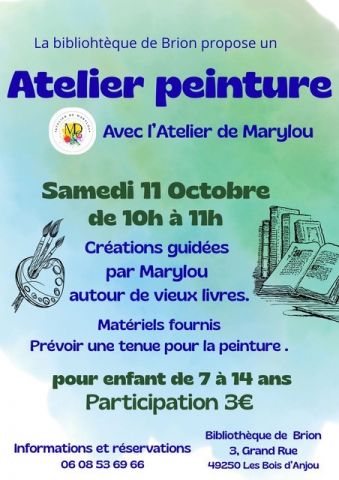 La bibliothèque de Brion vous invite les enfants à venir peindre avec l'atelier de Marylou. Le thème de la séance est la création à partir de vieux livres.