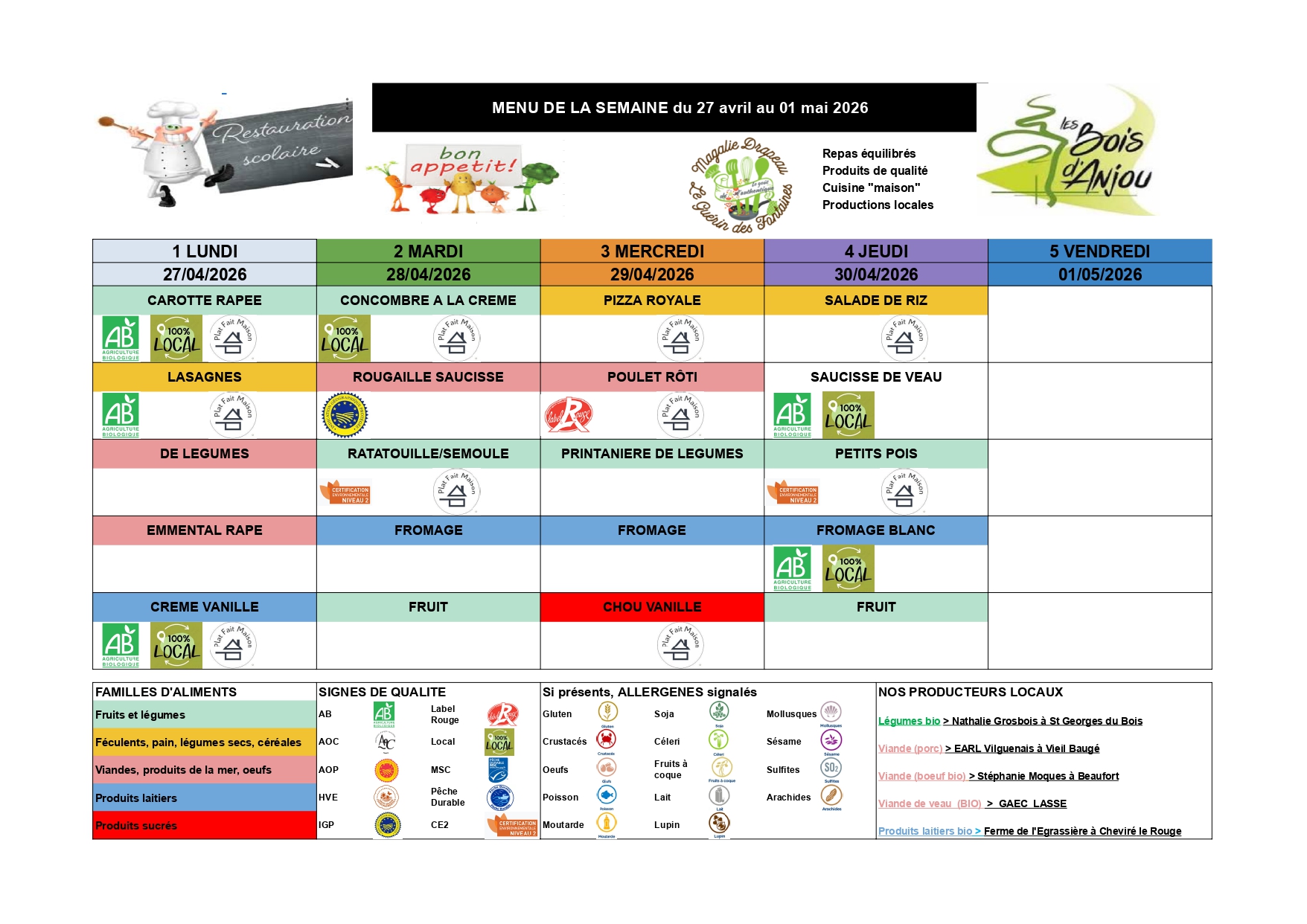 Les menus sont affichés tous les mois sur les bornes interactives et sur l’application Bois d’Anjou (à télécharger sur Google Play ou l’App Store).